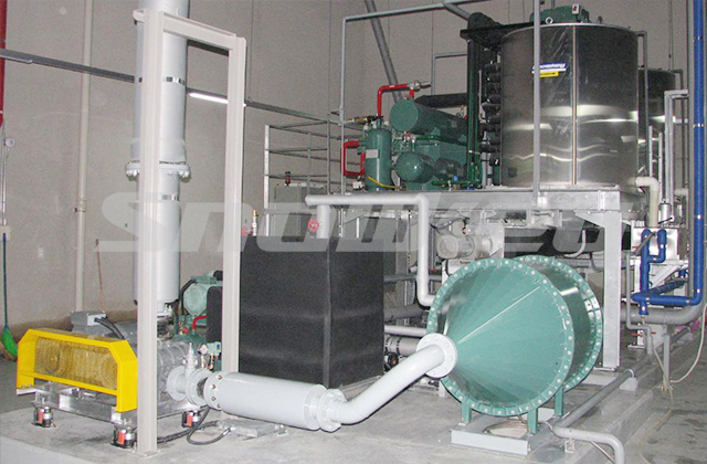 为提升送冰运行品质,可以选用空气冷却装置(较长距离输送系统),维持输送管道内空气温度较低,冰不融化易于输送。