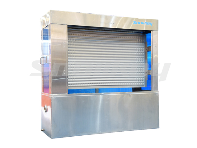 应用领域:工业设备冷却农产品加工混凝土降温水产加工产品特点:降幕式板片,水膜与制冷剂换热效率高。可联系制取接近0℃的冰水,系统制冷效率高,节能。蒸发器水侧有足够大的空间,不至于结冰冻坏。与水接触部分为不锈钢材料,且水侧的水盘、蒸发器等易于清洗,使用卫生等级要求高的场合。可采用抗腐蚀能力更强的SUS316L,适用于化工行业。