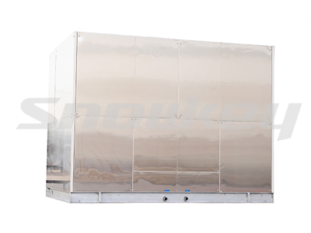 The evaporator is open type design, the freezing plate surface , water spray span, water channel is easy to clean.