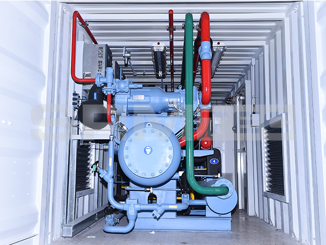 Snowman Mobile Refrigeration Station gathers the major refrigeration equipments, e.g. compressor, condenser, liquid receiver,gas- liquid separator and electronic control components, into a standard container. Cooling tower or evaporative condenser is puton the top of the container. The container serves as the engine room of the refrigeration system. Professional design, reasonablelayout, less space and flexible installation. High cooling efficiency, solid performance, controlled capacity for low temp and superlow temp working conditions. As many as eight compressors can be parallel operated. Intelligent control, simple operation, smoothand safe running, applicable for medium and small logistic cold storage or large cold room that needs the expanded cold storage.